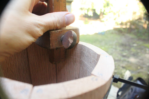 a special tool for cutting the croze into the barrel end which I do not posses, so to avoid making yet another tool (delaying completion yet again) and/or defaulting to my power router, I had to mark a line and cut the croze by hand.