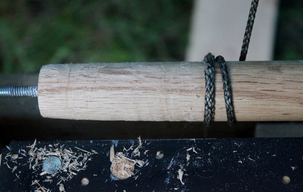 To compound my sin with the bungee, you can see that I began with a length of nylon paracord that I had lying around. It has abraded with a vengeance and I’ve already had to deal with broken lines and splicing new bits of line into my machine.