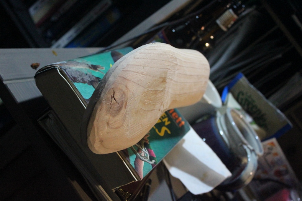 For the record: I’m won’t spend quite this many posts for the second last. However, on advice from Francis, I did go back out to the workbench and spent some more time zeroing in on the correct form of my last. He advised that I raise the sole about a 1/4 inch, sloping from the ball of the foot to the heel. This isn’t to accommodate a heel so much as to accommodate the shape of the human foot.