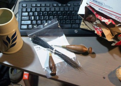 With a finished pair of lasts in hand, my next step in my shoemaking journey was to contact Francis Classe for advice. Our conversation ranged across the spectrum of tools and patterns. This inevitably led to a tussle with the US Postal Service, who waylaid my attempt to pay him for some tools, including some surprising ones: Boar bristles, which he offered to sell to me at a very reasonable price. If only I could get the check to him (Yes, a check; if you don’t know by now I’m a bit of a Luddite, you haven’t been paying attention.) which I finally sidestepped by at long last succumbing to the embrace of Paypal. . . God help me.