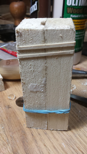Note that my pieces are rather thick. Partly that’s because I’m using a scrap and partly it’s because I wanted lots of room to maneuver when I got around to shaping the glued-up piece.