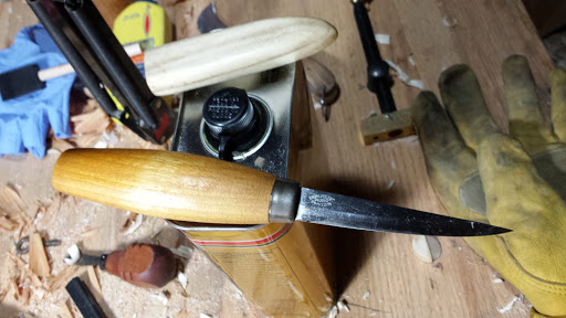 My favorite woodcarving knife has to be this Swedish blade made by Morakniv simply called “The Woodcarving 106“. They sell on Amazon for about $25.00, which is a pretty good price for a knife you won’t want to put down.