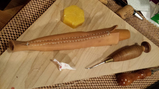 As it happens, my preferred style of knife sheath uses the round stitch to close the seam up the back. And since that’s a fiddly piece of business to learn and I’m in need of practice, methinks I hear a knife calling for a new leather home.